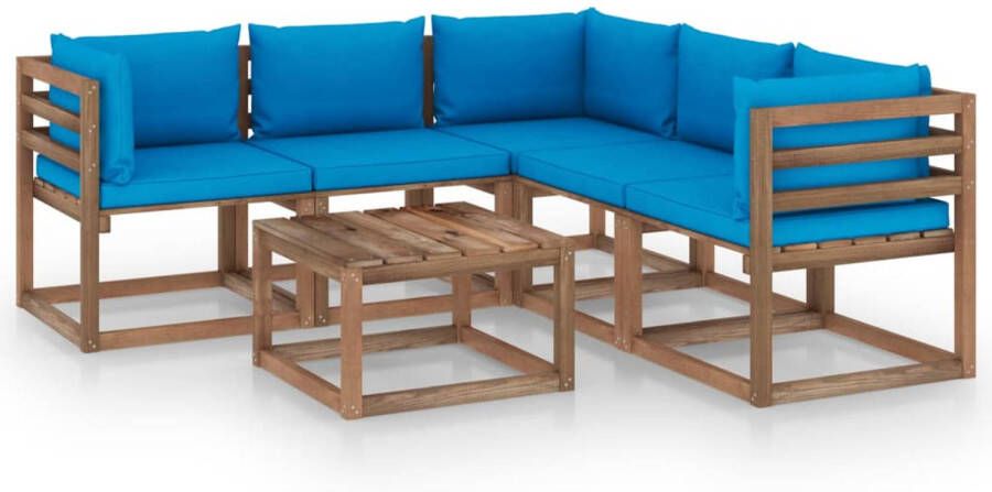 VidaXL 6 delige Loungeset Lichtblauwe Kussens Geïmpregneerd Grenenhout